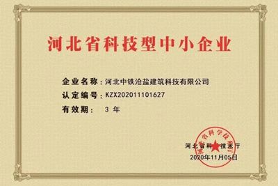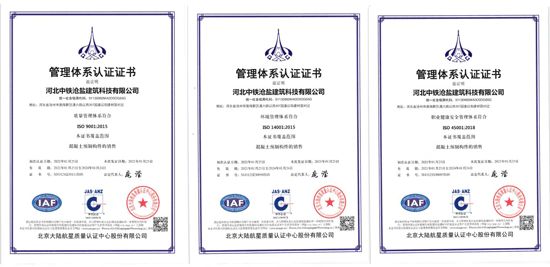 自去年投產以來,中鐵滄鹽科技創(chuàng)新喜報不斷,捷報頻傳,先后取得11項實用新型專利、3項發(fā)明專利、7項3A信用評價證書。繼2020年11月獲得河北省科學技術廳評選的河北省創(chuàng)新型中小企業(yè)的稱號后,通過積極的管理謀劃布局,2021年1月取得質量體系、環(huán)境管理體系、職業(yè)健康三大體系ISO9001認證;2021年8月通過了全國高新技術企業(yè)認定管理工作領導小組評選,獲批河北省2021年第一批高新技術企業(yè)認證。2021年9月,公司按照河北省工信廳被動式超低能耗建筑產業(yè)項目的文件要求,深度研究政策要求、全面匯總編寫課題資料,通過了工信廳第三方專家技術評審和外部財務審計等工作,被順利列入河北省工信廳被動式超低能耗建筑產業(yè)項目合格名單,納入政府資金滾動支持項目庫。