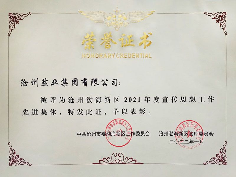 2月17日,在渤海新區(qū)宣傳工作會(huì)議上,我公司榮獲“2021年度宣傳思想工作先進(jìn)集體”榮譽(yù)稱號(hào)并受到表彰。