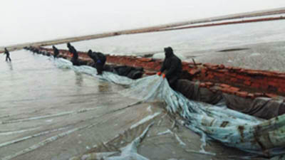 22日上午,副總經理李蜻海根據大雪漸弱、溫度繼續(xù)下降、風力再度加強的天氣實況,緊急組織召開會議,果斷決策:一是根據后步大風降溫的趨勢,今日寒流前全部回收塑苫。二是回收過程中塑膜淡水要片凈,操作要嚴細,確保塑膜完好。三是生產部、制鹽場各級管理人員要做好現場的指揮檢查。在收塑過程中,全體職工嚴細把握每一步操作要領,在冰冷刺骨的鹵水中,手倒、木杠撬,防止人為造成塑膜損傷,至下午3時,終于使全公司塑苫池完整回位,并及時用人工的方式對塑苫上的冰塊進行了清除,全部進行了苫封,做好防風防凍措施。